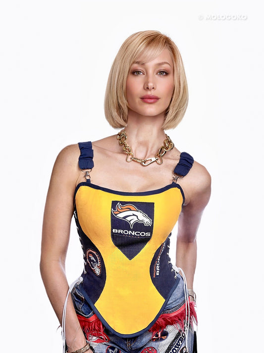 “Fray Play” Sculpted Two-Tone Denim Corset