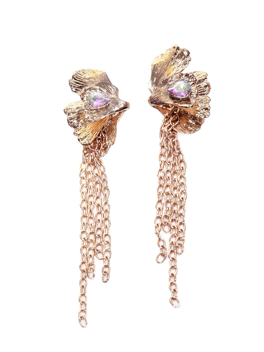 BLUSH PINK BEADED OSTRICH FEATHER STATEMENT EARRINGS