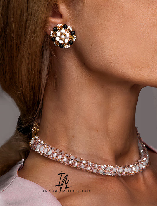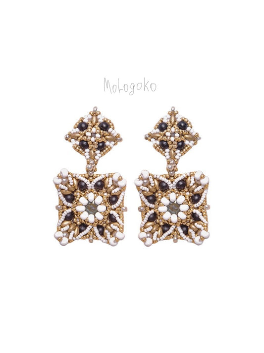 Black and Grey TWO TONE BEADED STATEMENT EARRINGS