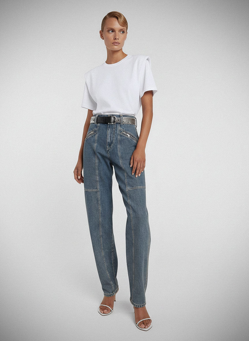 - The Base: Start with a high-neck cashmere sweater, a minimalist crewneck tee, or a sleek bodysuit in a neutral palette (charcoal, black, or bone).