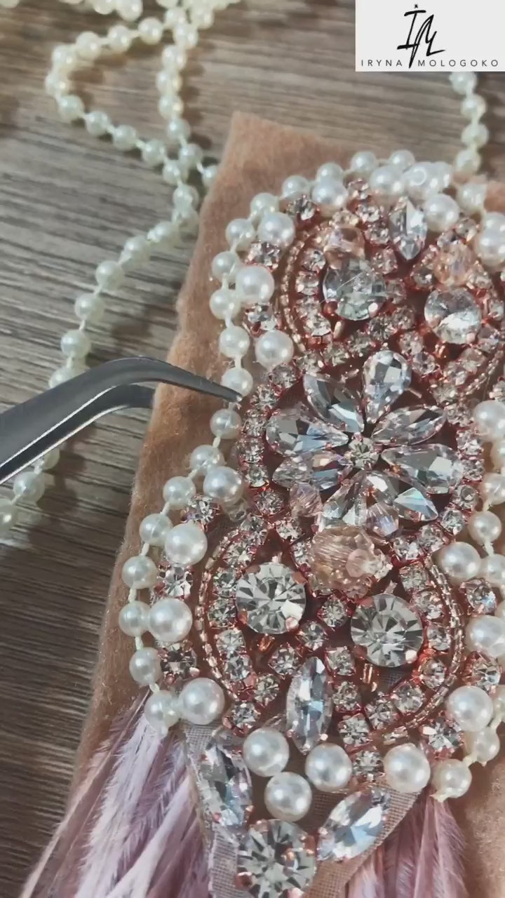 Hand beaded, high quality glass beads of several different shades: blush pink, dark nude, clear crystals.