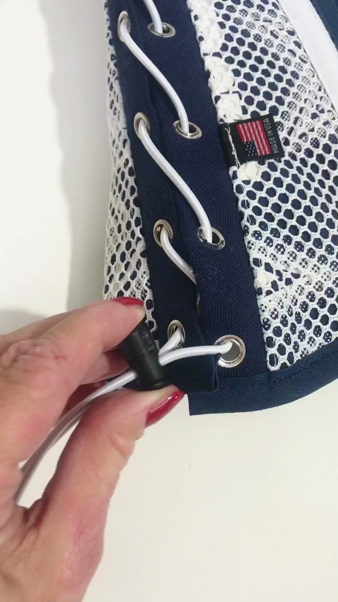 Customizable fit with side lacing panels (adjusts to 3 sizes)