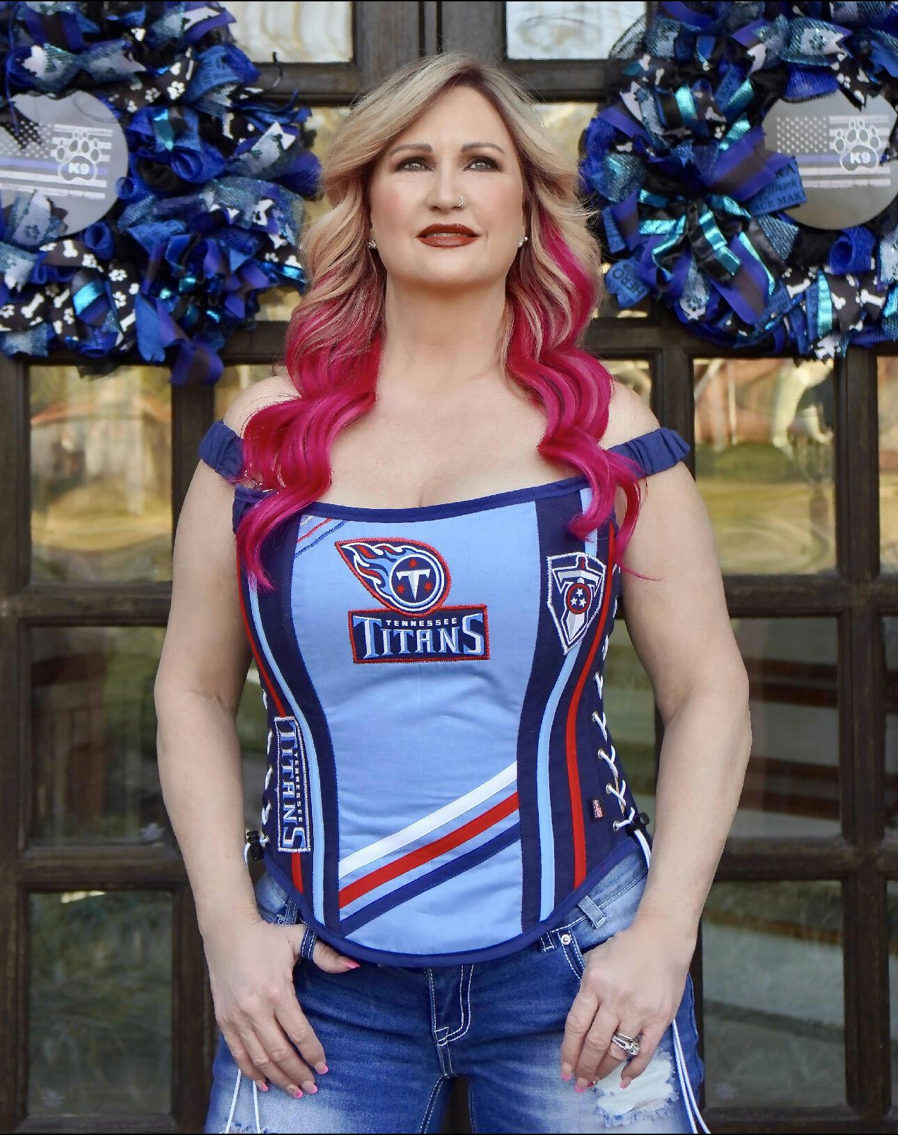 Show your Titans pride in our custom handmade corset-bustier top, designed to turn heads — whether it’s game day, a night out, or a cocktail party.