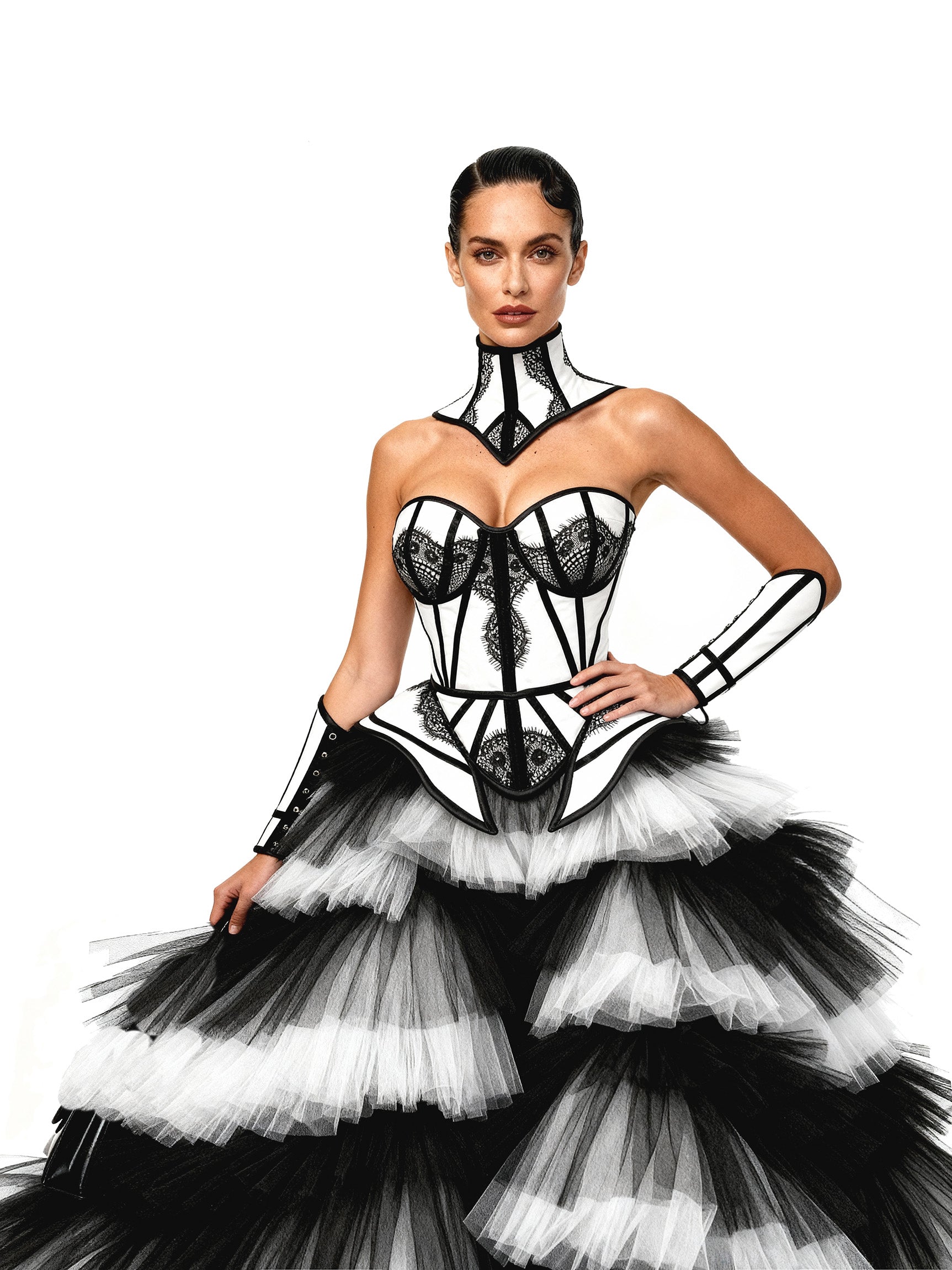 Check our standard size below. Also, Iryna Mologoko Couture recommend that you should follow our measurement guide to help you find out your exact size of shapes.